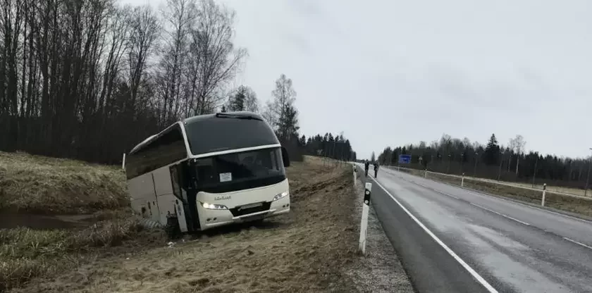 Автобус с туристами съехал с трассы под Малоритой: возможно, водитель уснул за рулем