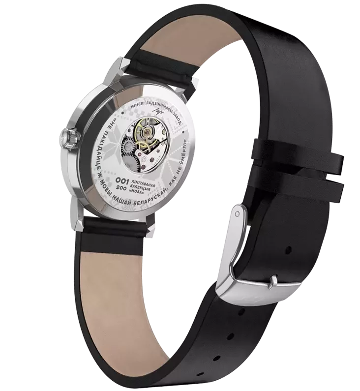 Классический корпус новых часов и строгое сочетание черного ремешка и белого циферблата — это продолжение «белорусскости». Иллюстрация того, что наш язык — это не только обращение к традициям и истории, но это и модно, и современно».