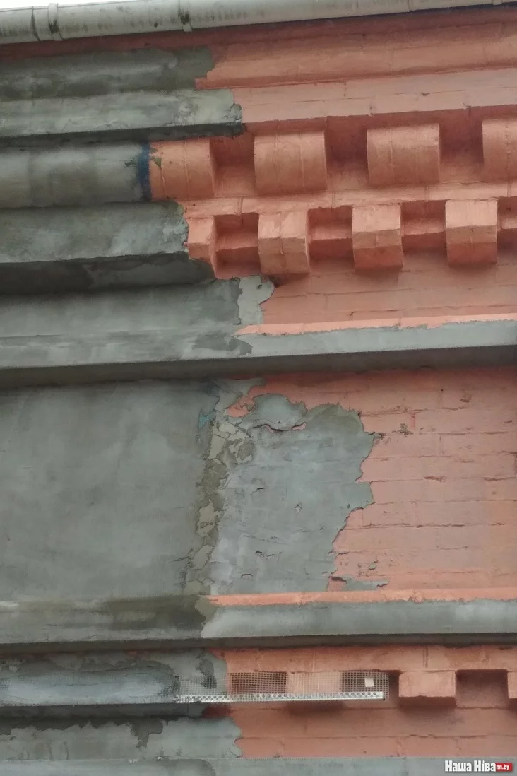 «Я работал неподалеку от железной дороги, — рассказывает «Нашей Ниве» местный житель, — и показывает, как строители цементным раствором замазывают зубчики на здании».