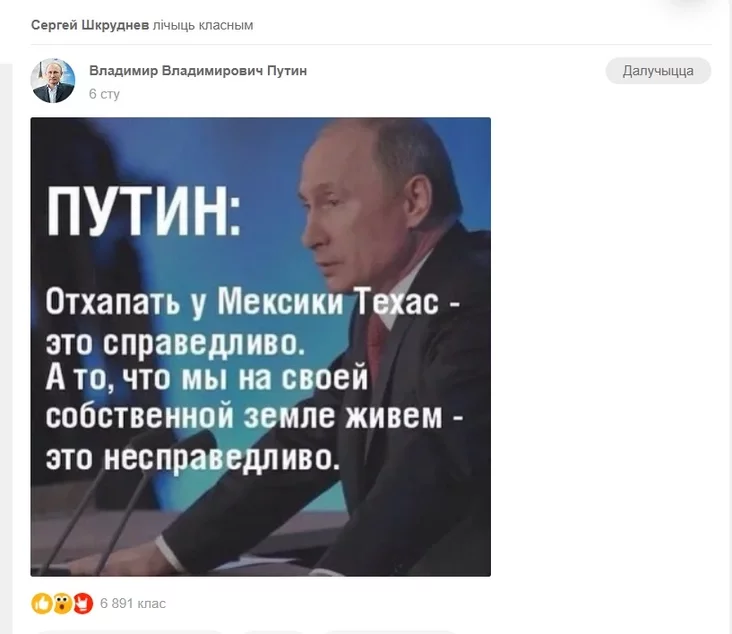 Очень странным выглядит перечень групп в соцсетях, на которые подписан Сергей Шкруднев: «Клуб друзей В.В.Путина», «Ностальгия по СССР», «Владимир Владимирович Путин». Шкруднев часто лайкает фото с Путиным. Если взглянуть на его страницу, то там и поздравление Лаврова с днем рождения, и реакция на запрет российским легкоатлетам участвовать в Олимпиаде, и о российской «пятой колонне», и о том, что США отхапали у Мексики Техас. Складывается впечатление, что Шкруднев живет совсем не в Беларуси, а в соседнем государстве.