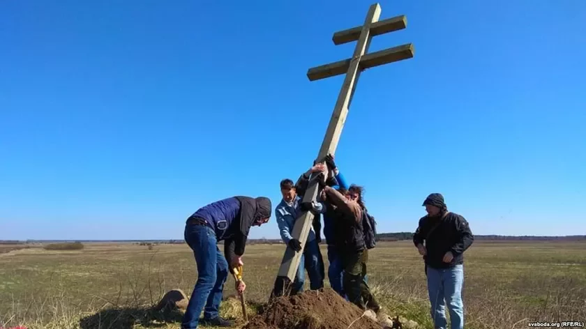Гродненские активисты установили крест повстанцам Кастуся Калиновского на кургане в Лидском районе 14 апреля.