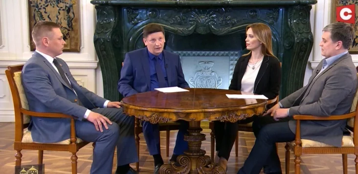 Передачу записывали в интерьере Мирского замка. Гости сидели за массивным дубовым столом в просторном зале, на фоне камина с гербом, вокруг были развешаны портреты магнатов. Думается, что такой выбор обстановки для шоу вызывает раздражение в западнорусистских и черносотенных кругах.