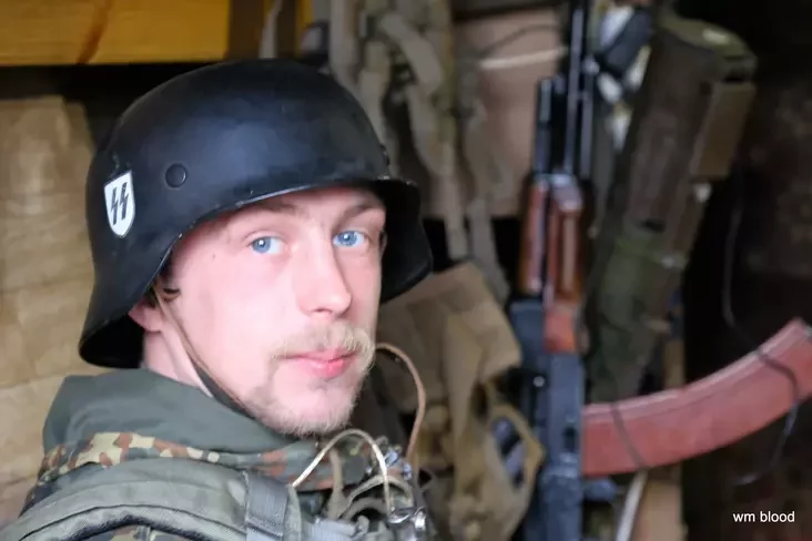 Как виз видно по фото в фейсбуке, на каске «Ганса» изображен рунический знак «SS» — гвардии гитлеровской партии.