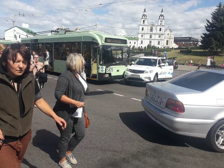 На Немиге столкнулись троллейбус и автомобиль с символикой Европейских игр