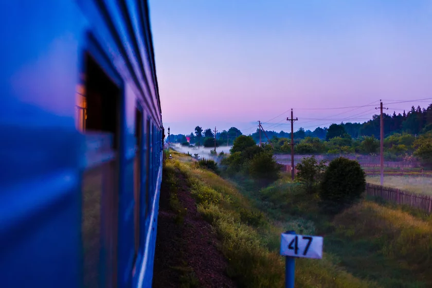 Потым са Стоўпцаў у Берасце мяне імчаў цягнік «Палессе». Таксама размаляваны. На ім былі выявы балотаў Ельні з QR-кодам на сайт Нацыянальнага парку і экалагічных актывістаў, якія праводзяць там заняткі для ахвотных. На прыпынку ў Івацэвічах я ўбачыў віцебскі цягнік. Я не адразу зразумеў, што на ім за малюнак. Нейкі мужчына ляціць над горадам, абдымаючы жанчыну. А, усё, узгадаў. Гэта ж Шагал. На другім вагоне Еўфрасіння Полацкая. QR-код я ня змог сасканаваць, бо ён быў за вакном. Але падумаў, паеду некалі ў Віцебск, у музей Шагала, а потым у Полацк, і сасканую перад паездкай.