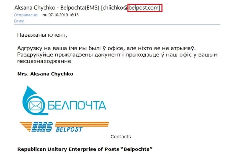На сегодняшний день зафиксированы случаи спам-рассылок, которые распространяются при помощи электронной почты в сети интернет. Письма содержат вредоносное программное обеспечение и отправляются якобы от имени РУП «Белпочта».