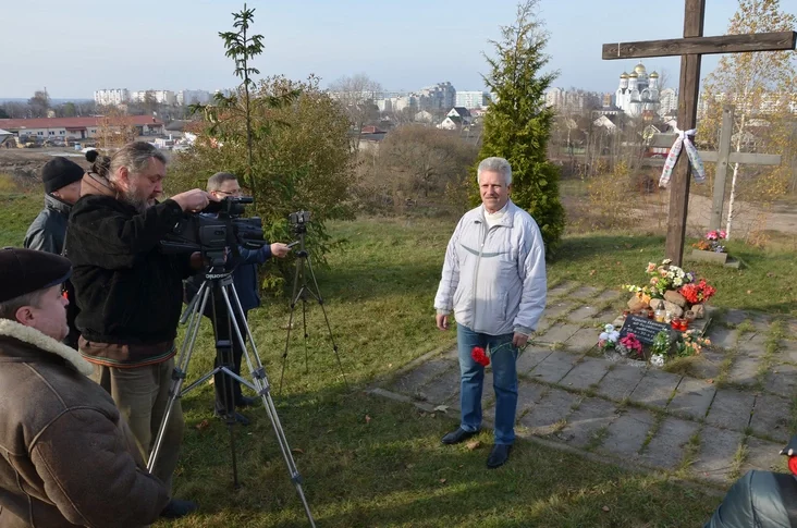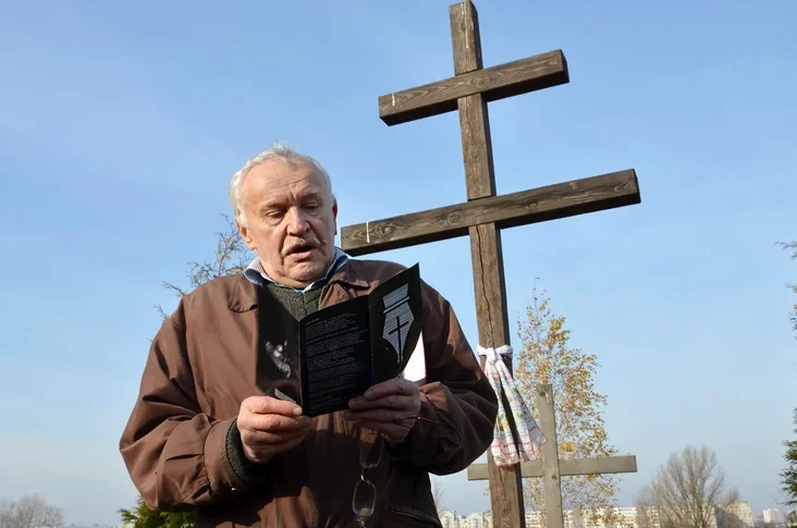 Каля трыццаці чалавек прыйшлі сёння, у свята Дзяды, да двух памятных крыжоў на праспекце Дзімітрава, што ўсталяваны ў гонар бязвінна забітых падчас савецкіх рэпрэсій.