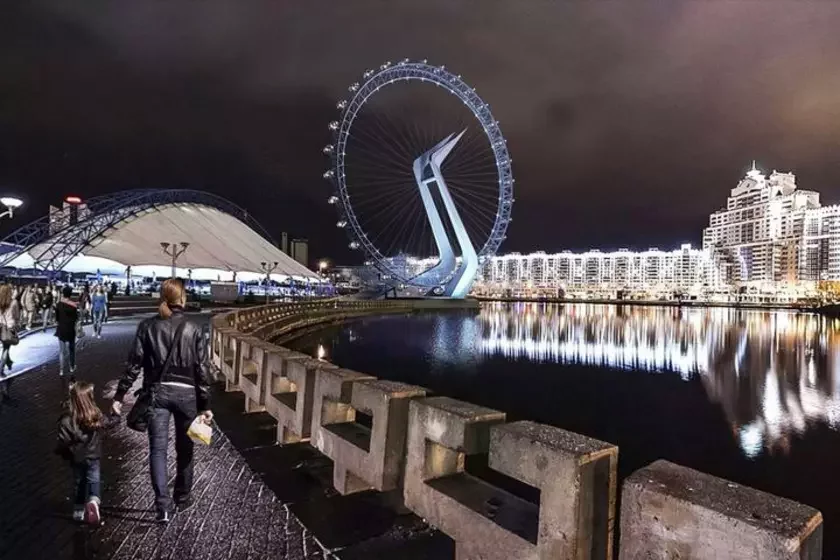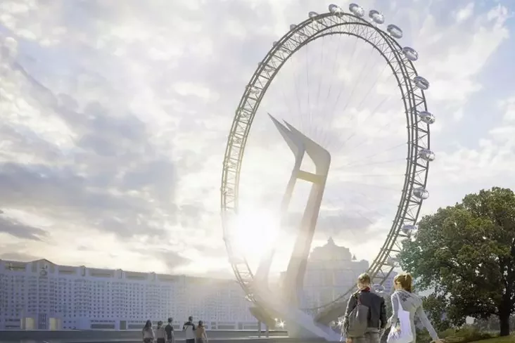 В основании колеса хотели разместить какое-нибудь развлекательное заведение или ресторан. В темное время суток на объекте предполагалась подсветка.