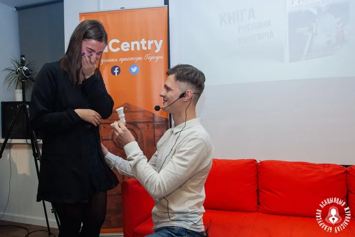 Белорусский журналист сделал предложение девушке прямо во время презентации своей книги в присутствии 200 человек