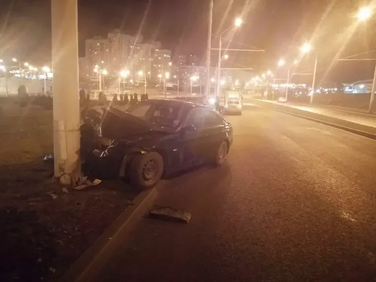 Водитель автомобиля «БМВ», двигаясь по подъёму с проспекта Победителей на улицу Орловскую, совершила наезд на осветительную мачту, пишет телеграм-канал ГАИ Минска.