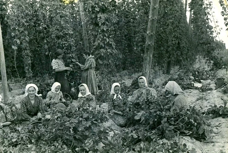 После революции хмелеводство было одной из первых отраслей, в которой начали преобладать коллективные формы хозяйствования. Например, под Калинковичами выращиванием хмеля занимались еврейские сельхозкоммуны. Сохранились фото межвоенного времени, на которых за хмелем ухаживают и собирают урожай счастливые коммунары, всем своим видом демонстрируя оптимизм и уверенность в преимуществах социализма.