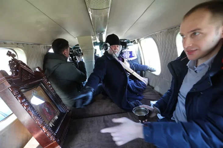 Митрополит Павел на вертолете облетел Минск и окропил его святой водой