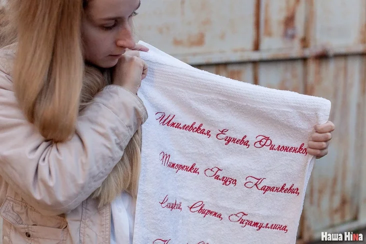 Я думала, что в карцере буду до последнего дня срока, смирилась с этим. Думала, передачу не пустят, но принесли. И это было как дыхание свежего воздуха, как подарок на Новый год. Мои одногруппники на белом полотенце красными нитками вышили свои фамилии. И мне так приятно стало, потому что мы после университета с ними не общались, а они обо мне помнили. Девушки из барановичской камеры мне свои вещи передали».