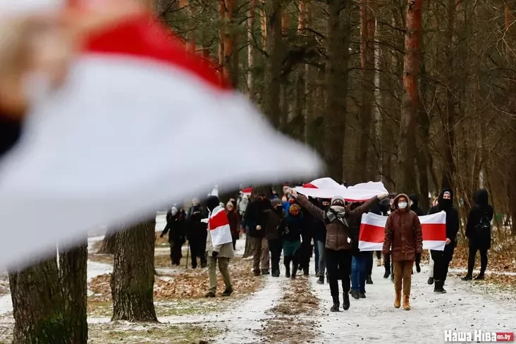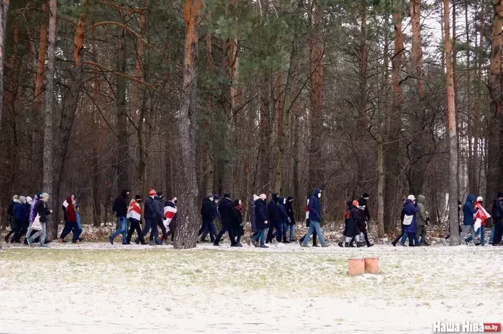 Сегодня в Минске и окрестностях прошло более сотни акций протеста. Одно из них в районе Зеленого луга. Люди шли лесными тропами