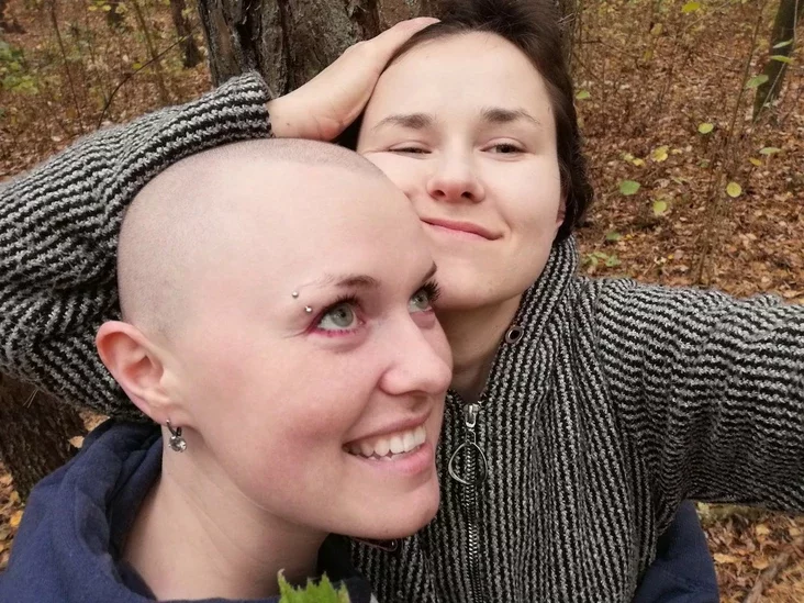 Один омоновец пошутил над Викиной прической. На самом деле она стрижется налысо не просто так. У нее болезнь щитовидной железы: из-за этого отмирают луковицы на голове и большой участок остается без волос. Поэтому Вика решила брить голову. Теперь ей даже нравится.