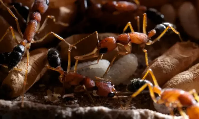 Колонией правит королева, и только они в муравейнике обладает репродуктивной способностью. А ее феромоны мешают другим самкам откладывать яйца. Королева, как правило, крупнее остальных муравьев и живет дольше, пишет The Guardian.