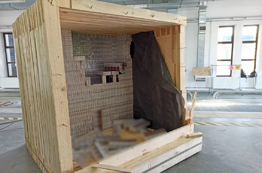 Функционеры на пограничном переходе в Кузнице задержали грузовик, которым управлял 28-летний белорус, который, согласно документам, должен был перевозить доски. В ходе детальной проверки грузовика выяснилось, что в прицепе, в специально подготовленных ящиках, имитирующих поддоны с досками, хранится контрабанда сигарет. Разгрузка и точный подсчет заняли сутки.