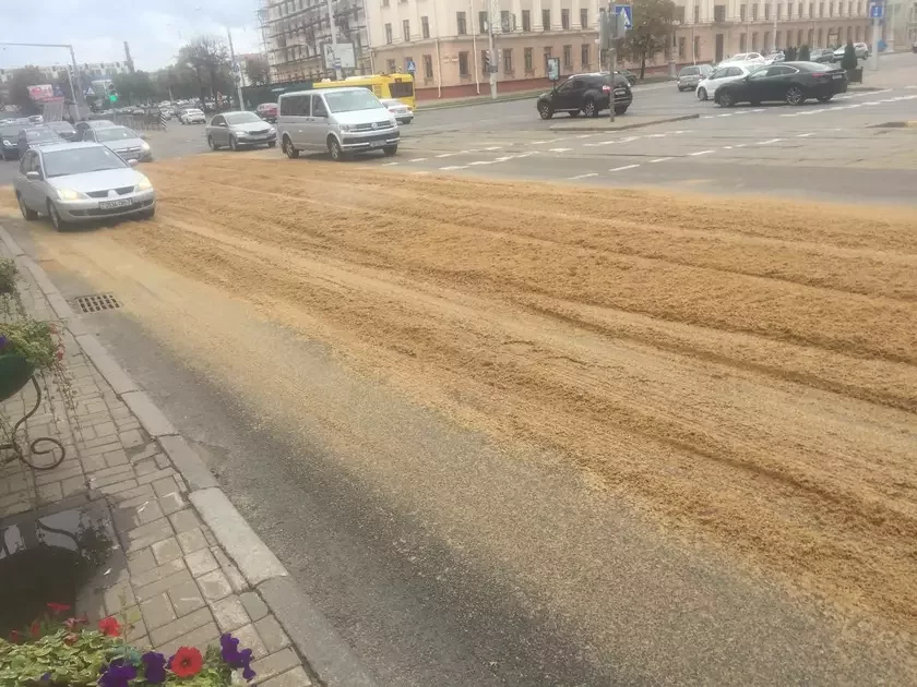 На пересечении проспекта и улицы Козлова в Минске рассыпали какую-то смесь ФОТО