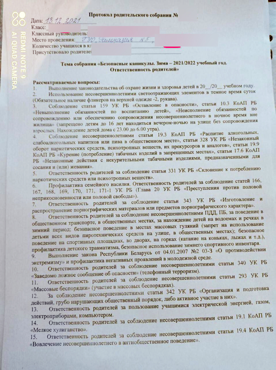 С 25 декабря по 9 января белорусские школьники будут отдыхать — каникулы. В последние учебные дни классные руководители традиционно проводят инструктаж, в котором обязаны рассказать детям о технике безопасности на каникулах и о том, как вести себя дома и на улице. Но в этом году «инструктажи» были нетипичны.