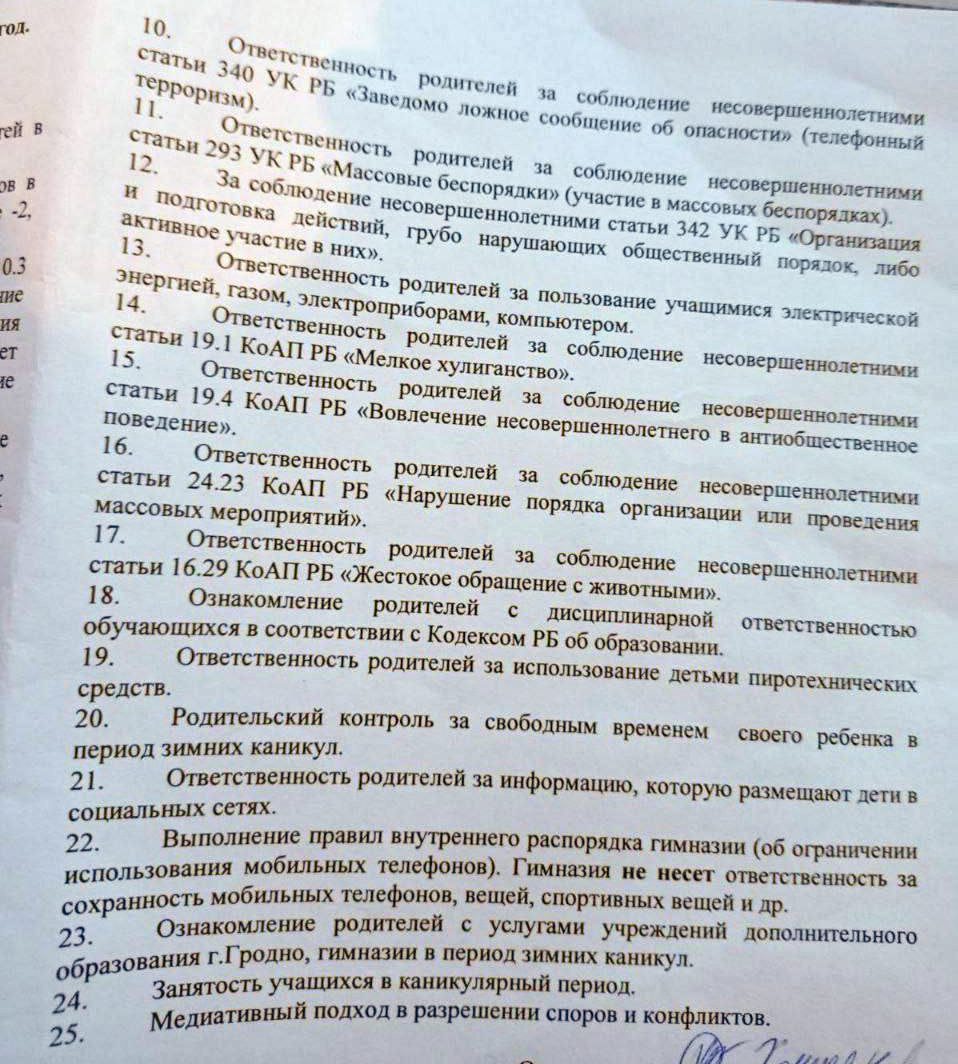 Оказывается, теперь учителей обязали рассказывать детям и о народных статьях, по которым сейчас чаще всего судят арестованных по политическим мотивам. О том, что с ними будет, если они примут участие в несанкционированных массовых мероприятиях. Что будет с их родителями, которые их якобы могут водить с собой на политические мероприятия.