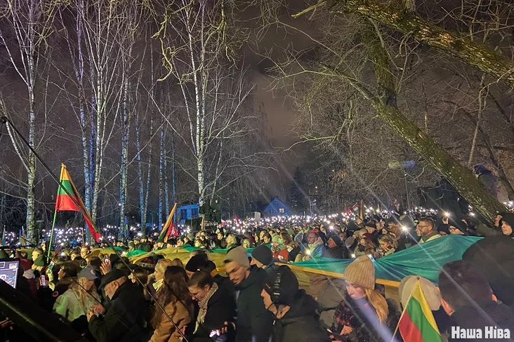 Тысячи людей собрались вечером в центре Вильнюса, чтобы выразить поддержку украинцам. Колонна прошла от Сейма до посольства России, где состоялся антивоенный митинг. Смотрите, как это выглядело.