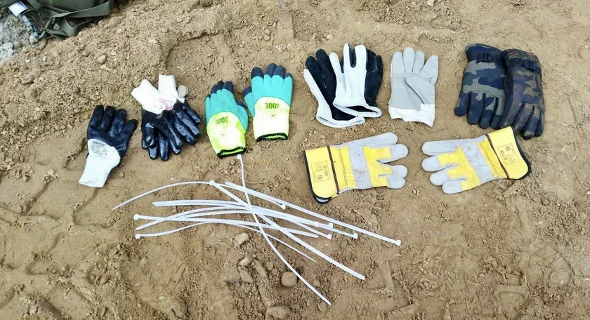 У задержанных обнаружили защитные перчатки и пластиковые стяжки, которыми они подвязывали колючую проволоку на линии границы.