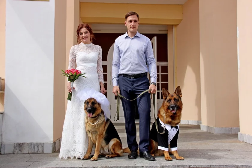 Молодожены познакомились благодаря увлечению кинологией, оба занимаются дрессировкой собак. Отсюда и возникла идея проведения необычного торжества.