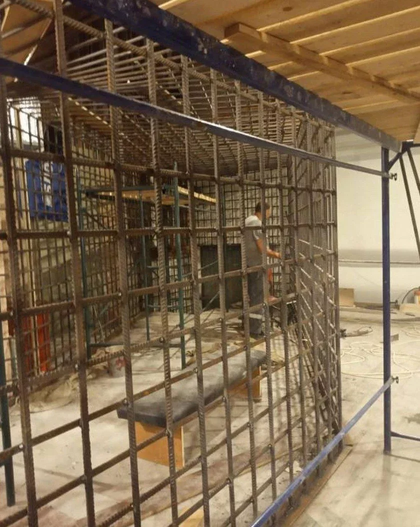 Клетка для узников на сцене Мариупольской филармонии. Фото: телеграм-канал Мариупольского городского совета