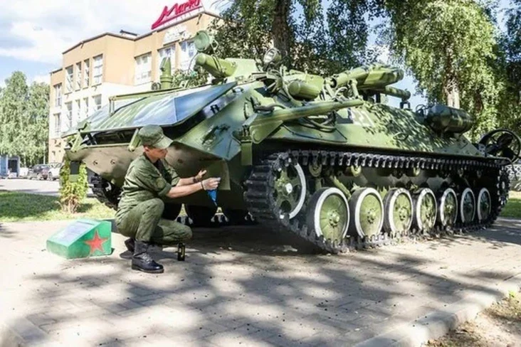 Разрисовали военную технику, выставленную в сквере в центре Борисова