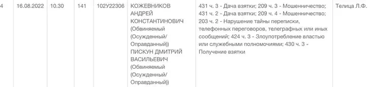 В суде Московского района Минска начался суд над Андреем Кожевниковым и Дмитрием Пискуном. Судят по шести статьям Уголовного кодекса: дача взятки, мошенничество, нарушение тайны переписки, злоупотребление властью, получение взятки.