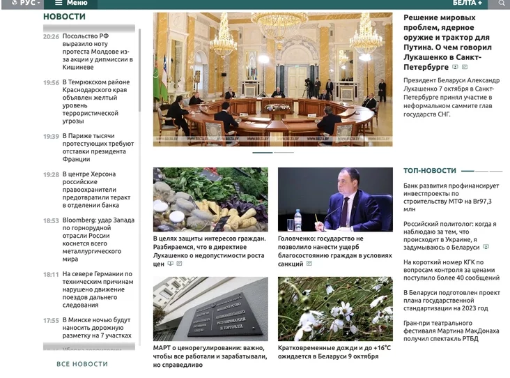 Если верить БелТА и «Советской Белоруссии», главная новость — это всегда Александр Лукашенко. Здесь же и Наталья Кочанова с новыми банальностями, а также Покровский православный фестиваль.