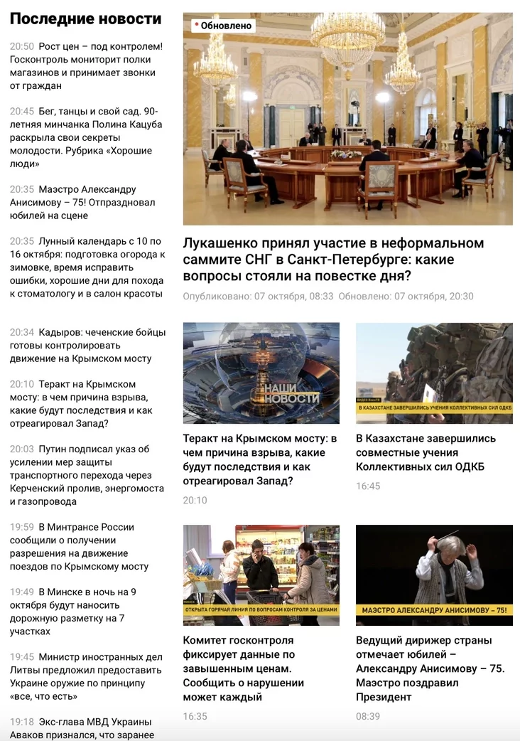 Среди главных новостей на БелТА, «Советской Белоруссии» и «Звязде» удара по Крымскому мосту, который в мире оценивают как новый поворотный момент в войне России против Украины, нет.