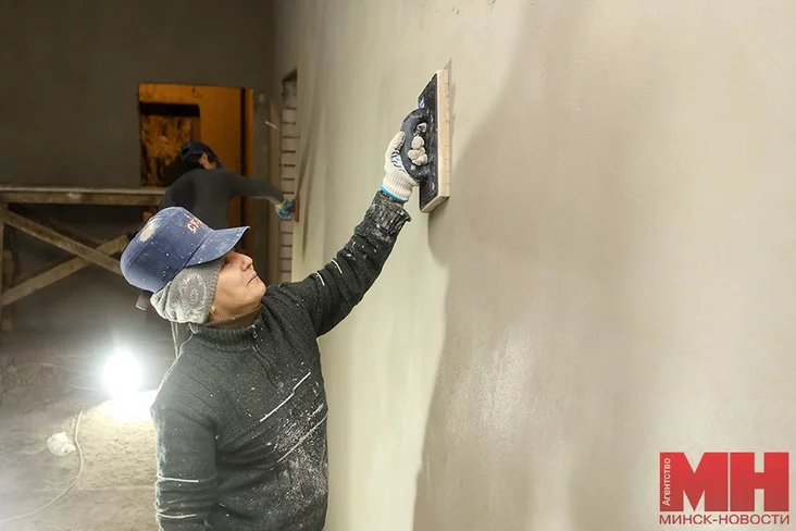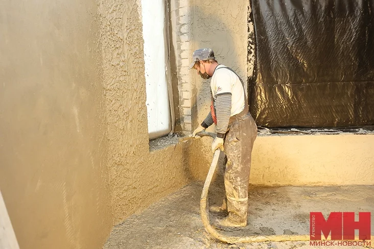 Смонтированы все оконные и дверные наружные блоки, что дало приемлемый температурный режим внутри здания. Уже трудятся две бригады штукатуров, около 20 % от общего объема работ (8 000 кв. м) они выполнили. Для обогрева помещений устанавливаем конвекторы: температура при штукатурке должна быть не менее +10 °C. Процентов на 80 по этажам разведены водопровод и канализация. Уже приступили к стяжке и утеплению полов.