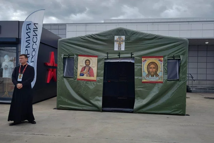 «Развернул, быстренько надул, послужил, закрылся и поехал». В России презентовали передвижную Z-церковь