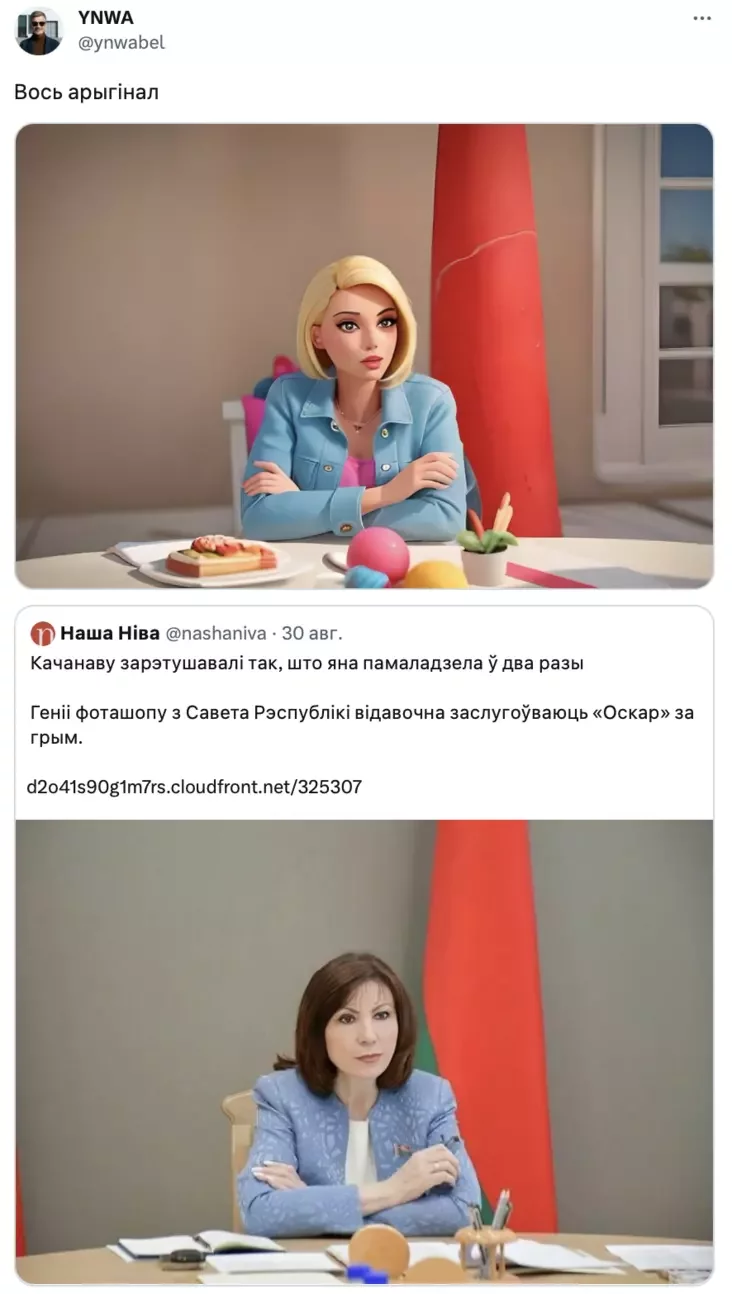 На этой неделе твиттер обсудил новую ретушь Кочановой, «нацистские» васильки, соломенную Хатынь и Азаренка в роли преподавателя в ПГУ.