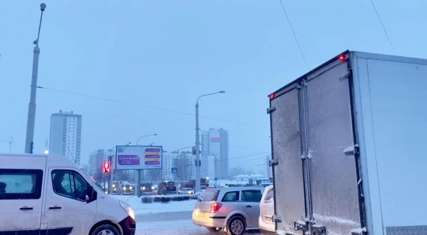 Из-за стихии плохо ходит общественный транспорт в сторону центра города, в обратном направлении — очередь из машин.