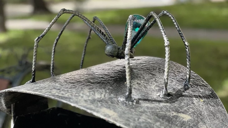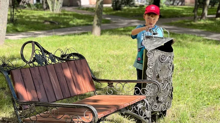 Есть в этом сквере и другие оригинально оформленные скамейки и мусорки.