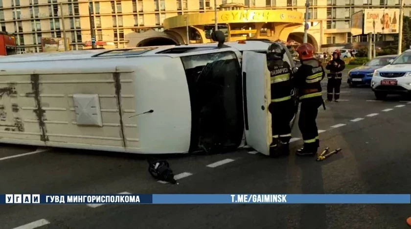 Микроавтобус перевернулся на пересечении минских проспекта Машерова и улицы Богдановича, сообщило УГАИ ГУВД Мингорисполкома.
