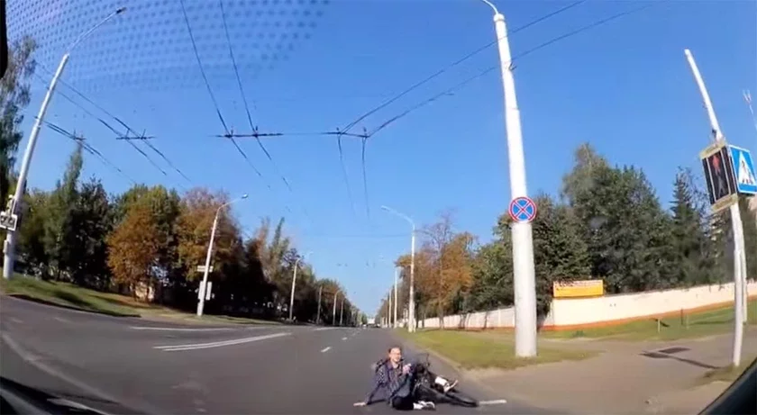 Велосипедист, подъезжая к перекрестку, упал прямо на проезжей части. К падению парня привело резкое торможение на самом краю тротуара, пишет Onliner.by.