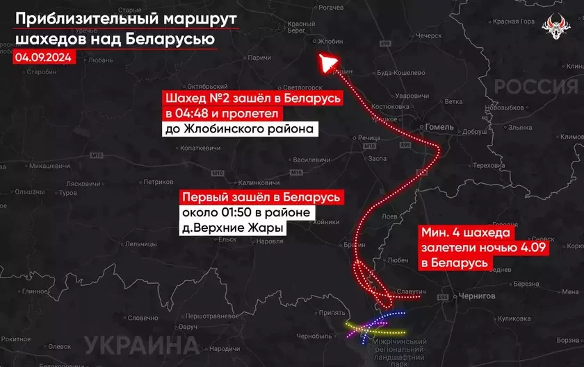 Также шахеды залетали в Беларусь в 04:48, 05:49 и 08:04. Большинство из них летали в районе беларусско-украинской границы, постоянно пересекая ее в обе стороны, но один из них полетал над границей и ушел на север страны. Один из шахедов ушел в район аэродрома «Зябровка», пролетел Гомель и взял курс на Могилев. Последний раз его видели в 05:49 в районе Жлобина, после чего дрон потерялся, куда он делся — неизвестно.