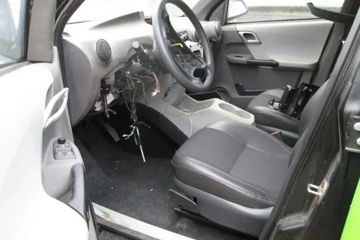Машина находится в печальном состоянии. В объявлении говорится, что выставленный на продажу образец — цвета ярко-зеленый металлик, однако он уже разукомплектован. Фактически предлагается кузов с салоном и подвеской, но без двигателя и трансмиссии.