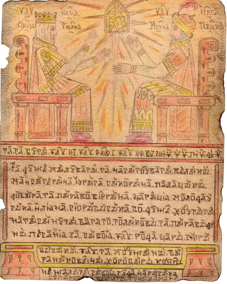 Элементы оформления и текст, написанный загадочным алфавитом, не имеют исторических аналогов, их невозможно соотнести ни с одной из эпох или регионом — так не рисовали нигде и никогда. Кажется, даже загадочный манускрипт Войнича, который многие считают мистификацией, проще вписать в стилистический ряд других произведений европейской письменности, чем листы Иванова.