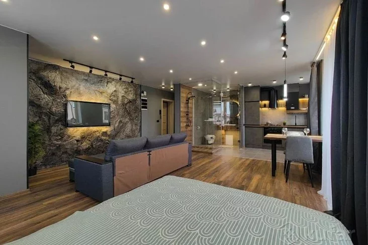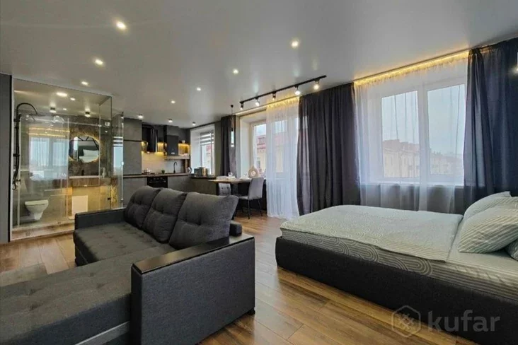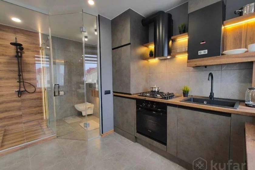 Арендовать на сутки необычную однокомнатную квартиру предлагают в Бобруйске. Из 40-метровой квартиры сделали студию с дизайнерским ремонтом. Все хорошо, но есть один нюанс — туалет, который находится за метр от плиты.