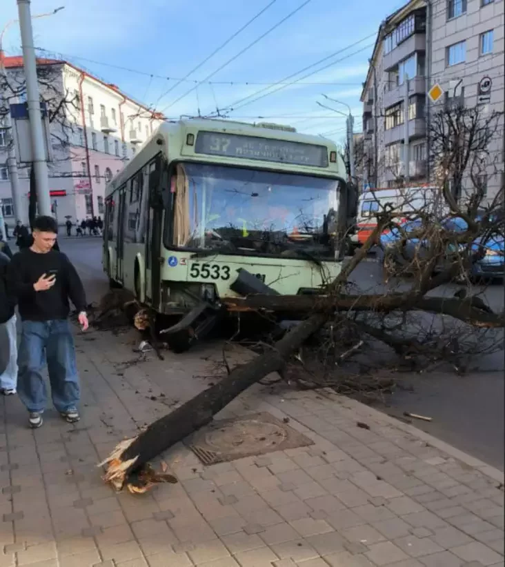 Что именно произошло, неизвестно. По снимкам видно, что 37 троллейбус наехал на дерево.