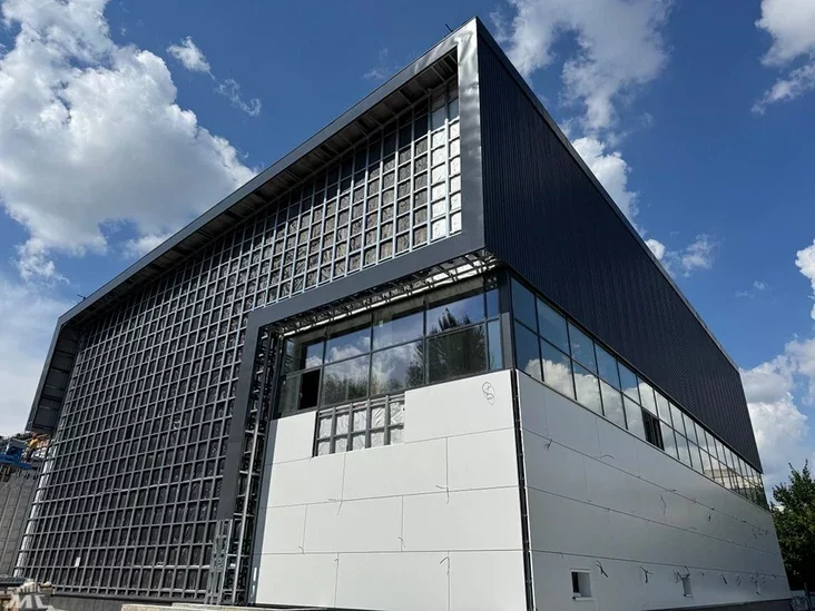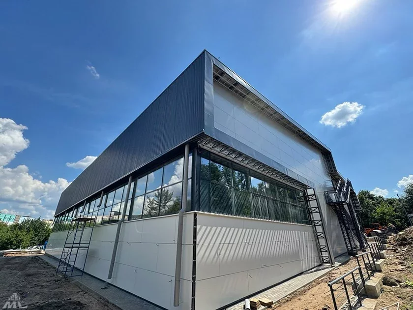 Общая площадь фасада спорткомплекса — более 3 тысяч квадратов. Почти половина готова.