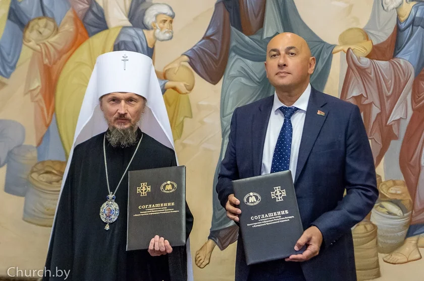 3 сентября Министерство информации Беларуси и Белорусская православная церковь подписали обновленное соглашение о сотрудничестве. Документ утвердили министр Марат Марков и патриарший экзарх всея Беларуси, митрополит Минский и Заславский Вениамин.