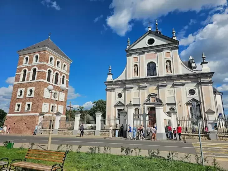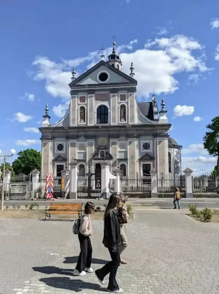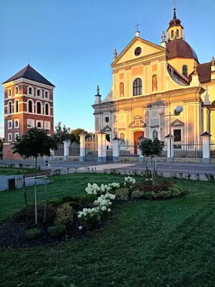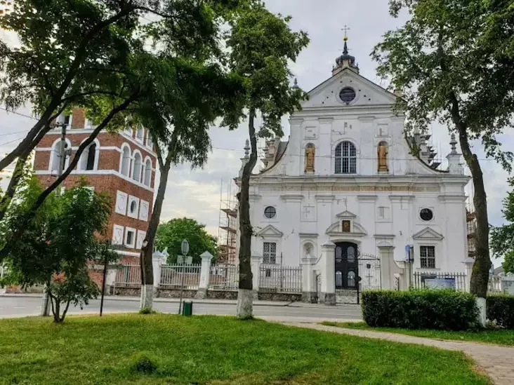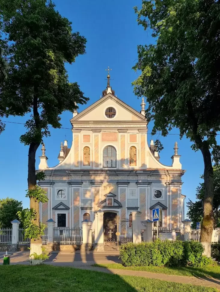 Раньше на углу улиц Гейсика и Адама Мицкевича был сквер с деревьями, которые красиво обрамляли великолепную барочную архитектуру костела, но теперь все изменилось.