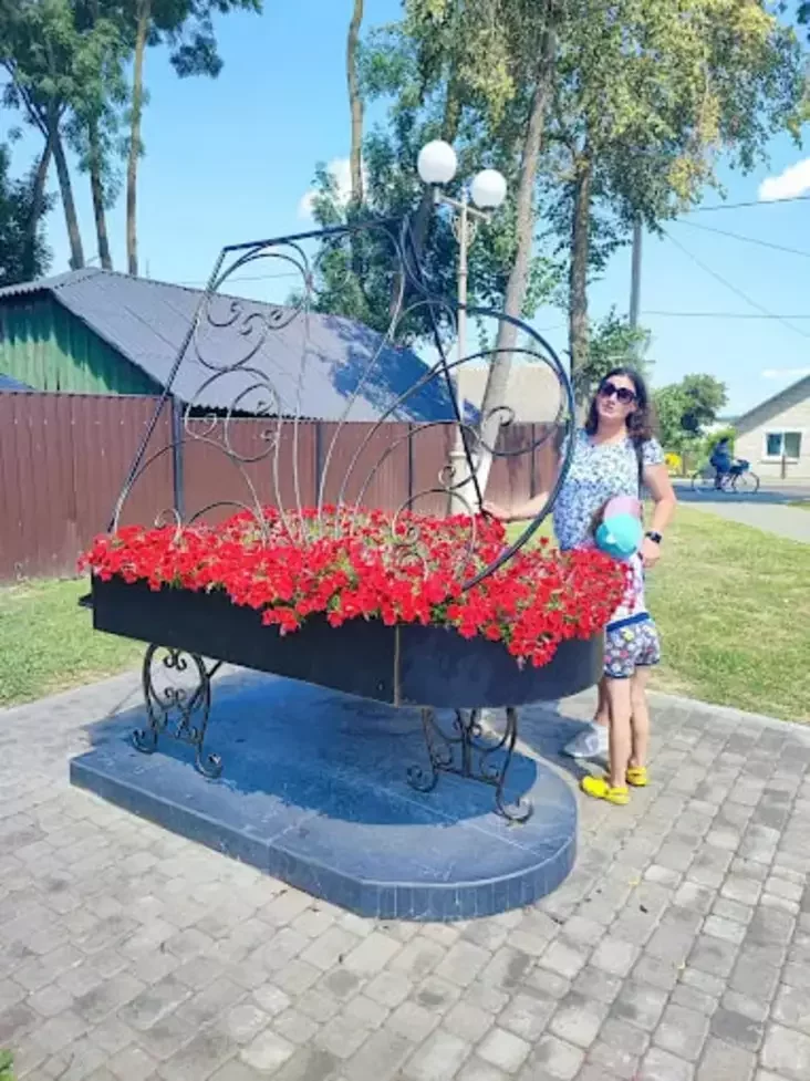 Отдельная изюминка — металлическая клумба в виде черного рояля, чья дека украшена однолетними цветами. Цветочный рояль стоит на постаменте из черного камня, напоминая скорее наряженный похоронный катафалк.