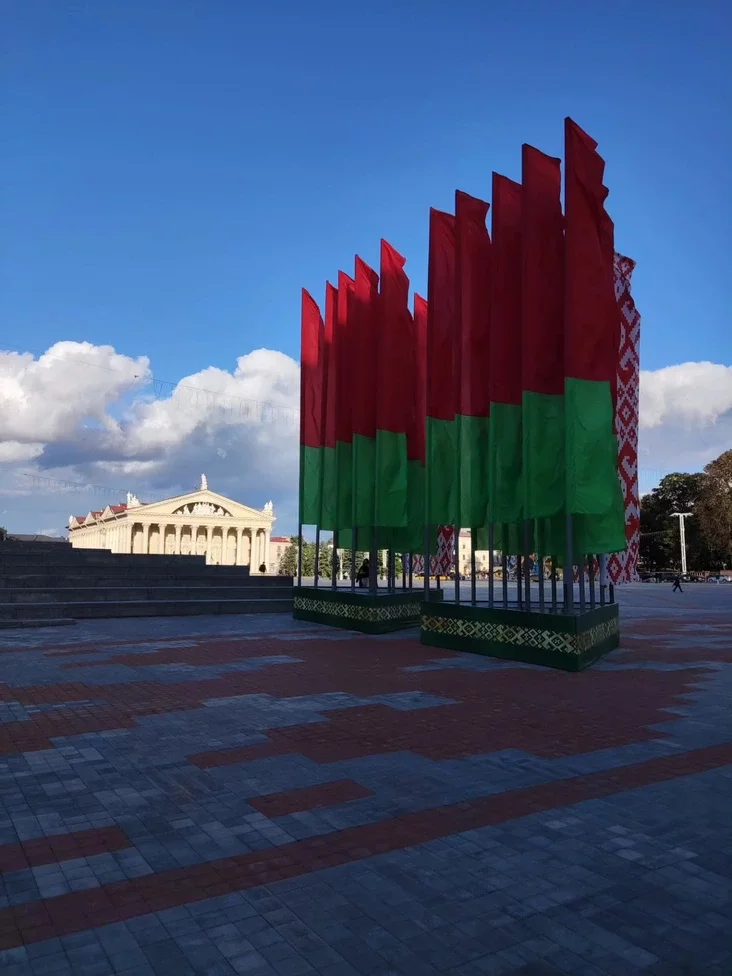 Под конец текста автор замечает, что бездомных на улицах нет, так как, как объясняет ему друг, «все бомжи в тюрьмах», где их используют как «гибридное оружие» против политических. Город в преддверии государственного праздника — Дня народного единства (17 сентября) — увешан государственными флагами, а в транспорте звучит пафосная речь о Минске.