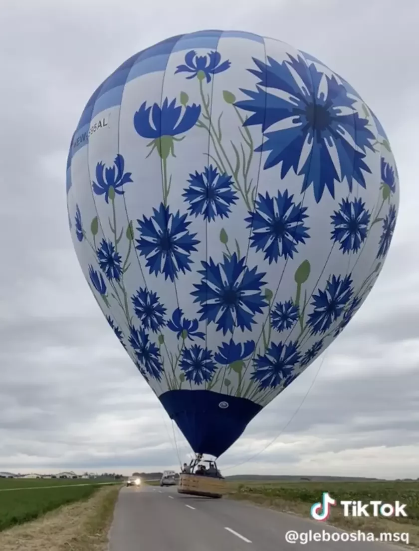 Необычный случай произошел около Минска: воздушный шар вместо поля спустился на проезжую часть.
